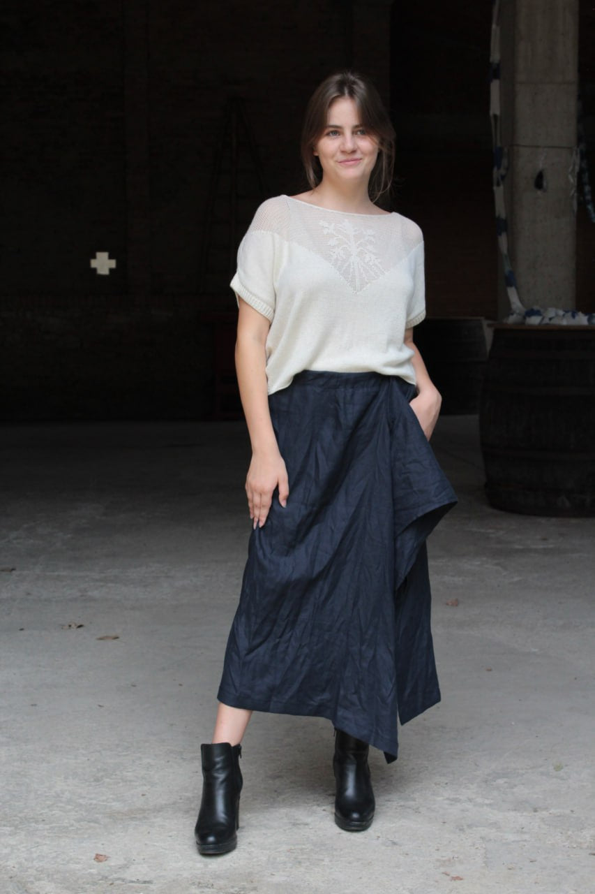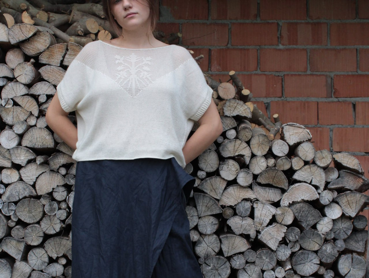 A sleeveless blouson with a dropped shoulder line from the SEMARGL collection, crafted from a soft blend of cashmere and silk. The yoke features the Tree of Lineage motif, hand-knitted in the designer’s signature technique. The flowing silhouette enhances the natural softness of the material and the refinement of artisanal work. A one-of-a-kind piece, it can also be made to order, inspired by the original design and preserving the spirit of the collection.